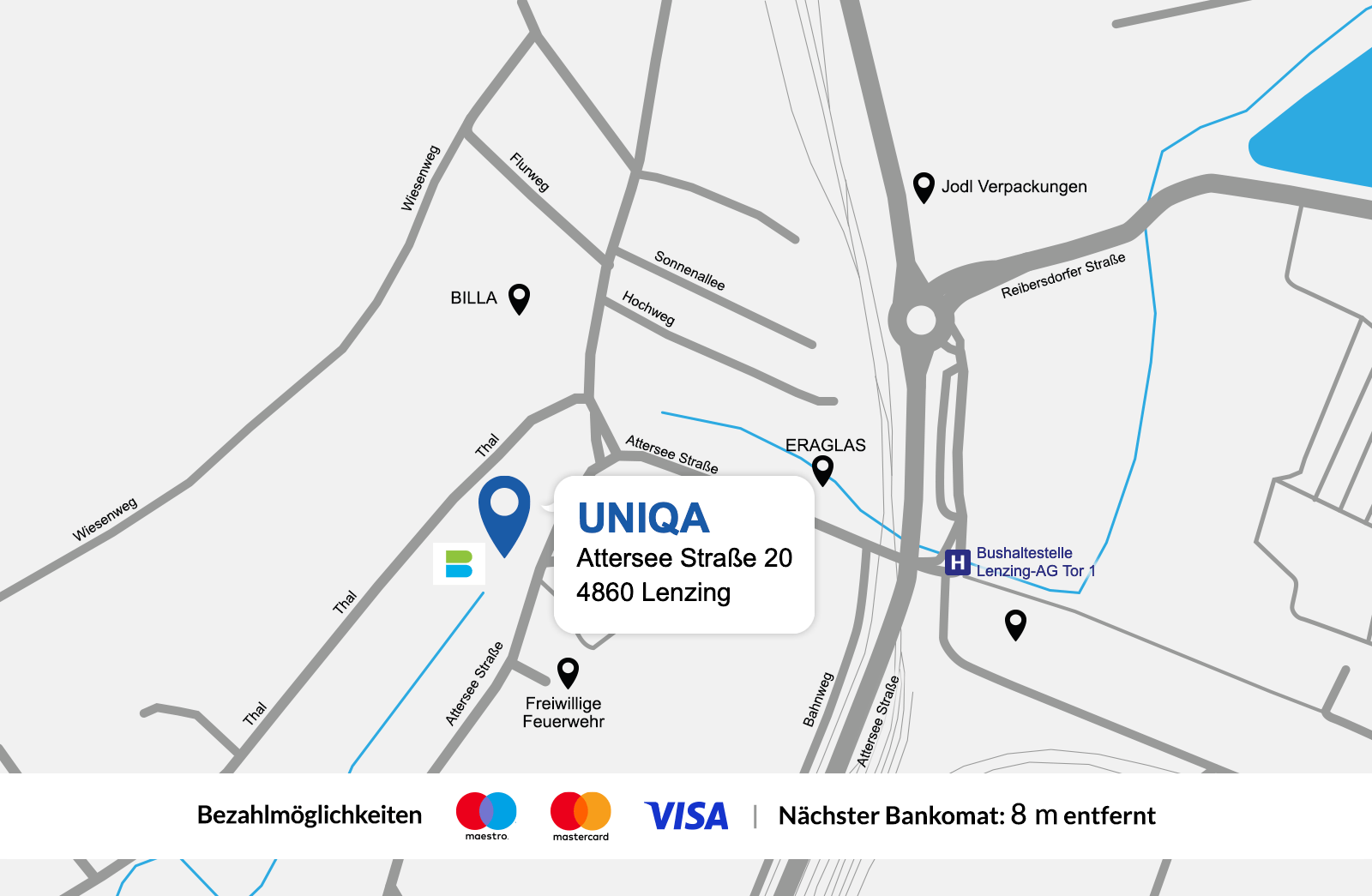 Eine detaillierte gezeichnete Karte der UNIQA Generalagentur Akkura Service